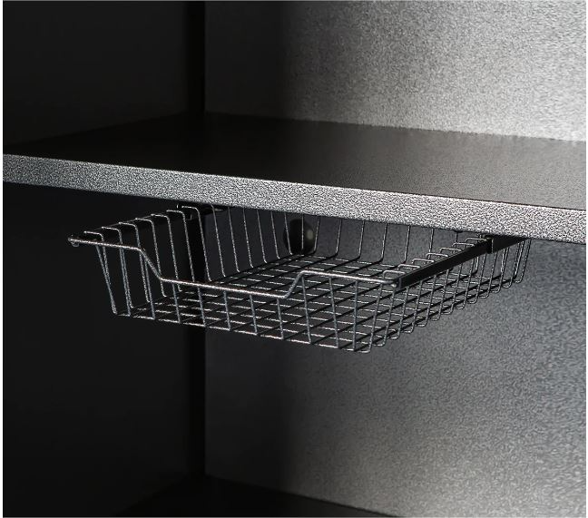 Neatly store smaller items and expand your storage capacity with the Flex Tall Cabinet Storage Basket, built to hold up to 15 lbs on garage cabinet sets. Constructed from sturdy, powder-coated steel wire, this basket can be placed in multiple positions with up to two baskets per shelf and slides easily on included metal tracks.Read More